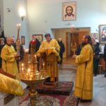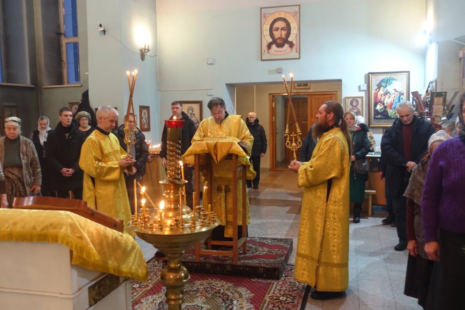 На сугубой ектении были прочитаны особые прошения, епископ Филипп вознес молитву о Святой Руси. Песнопения богослужения исполнил архиерейский хор под управлением регента Анны Апостол.