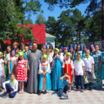 Затем окропил всех святой водой и их детские глазенки засветились от счастья, а лица озарились светлыми лучезарными улыбками, так они радуются когда на них попадают брызги святой воды и очень ждут этого момента.