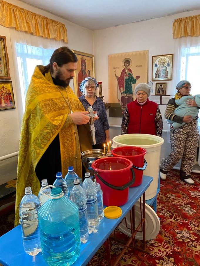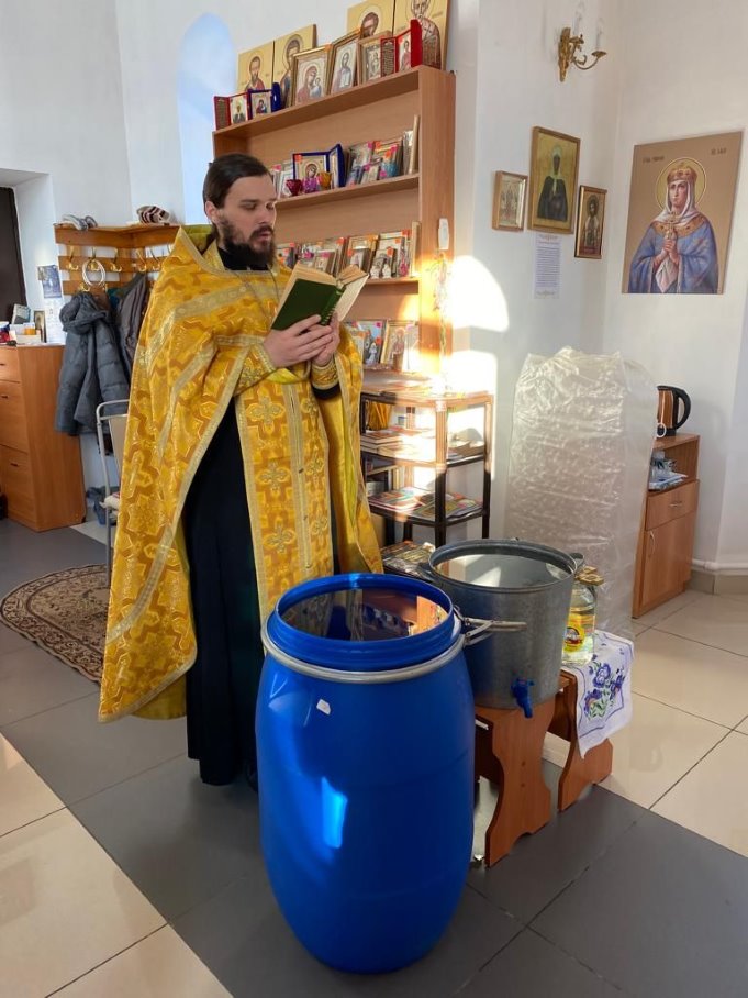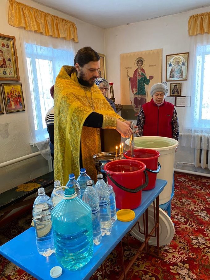 18 января, в Крещенский сочельник, иерей Антоний Нечепоренко освятил воду в храме во имя свв. апостолов Петра и Павла с. Хорошего и Князь-Владимирском храме г. Карасука.