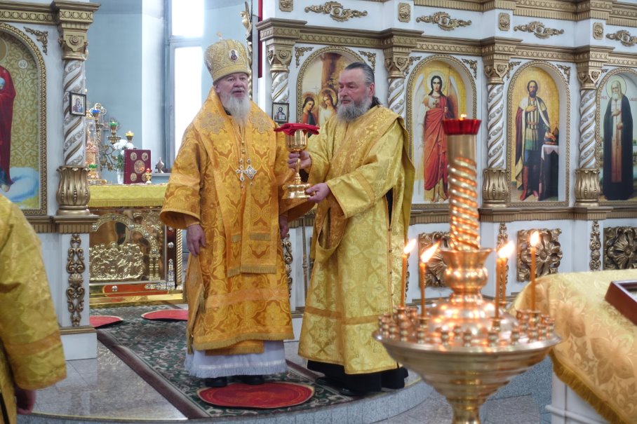 По окончании проповеди Его Преосвященство Владимир, епископ Каинский и Барабинский, обратился с поздравительным словом к епископу Филиппу и поздравил его с 12-летием архиерейской хиротонии.