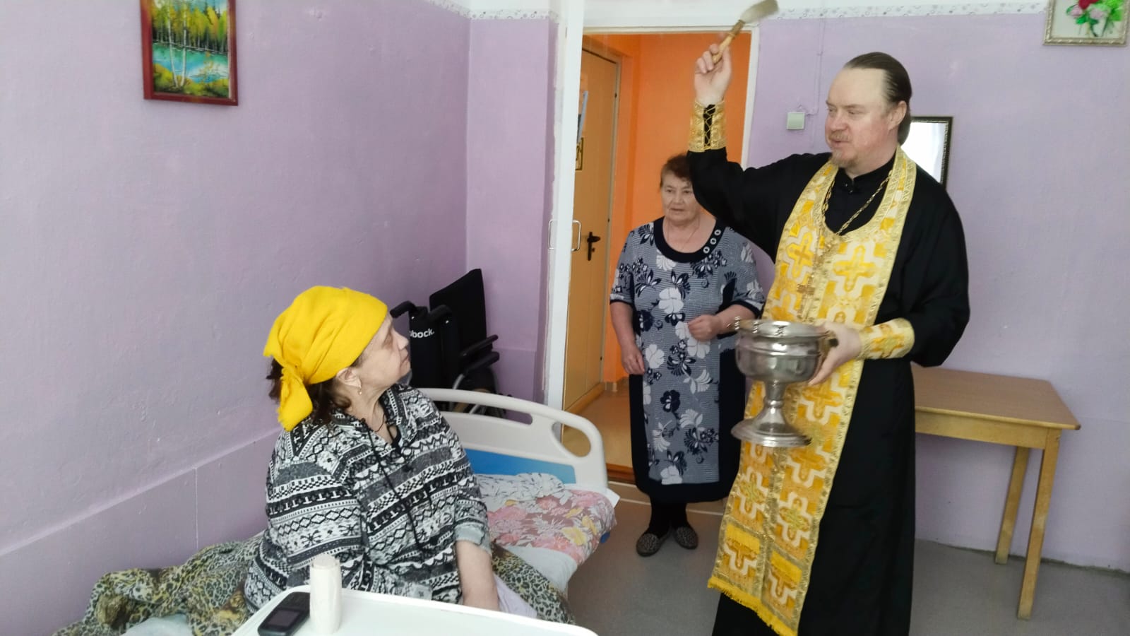11 марта иерей Михаил Прут, настоятель храма во имя св. апостола и евангелиста Иоанна Богослова с. Здвинска, посетил филиал МКУ “КЦСОН Здвинского района” “Отделение милосердия для престарелых и инвалидов” (ОМ) с. Сарыбалыка Здвинского района.