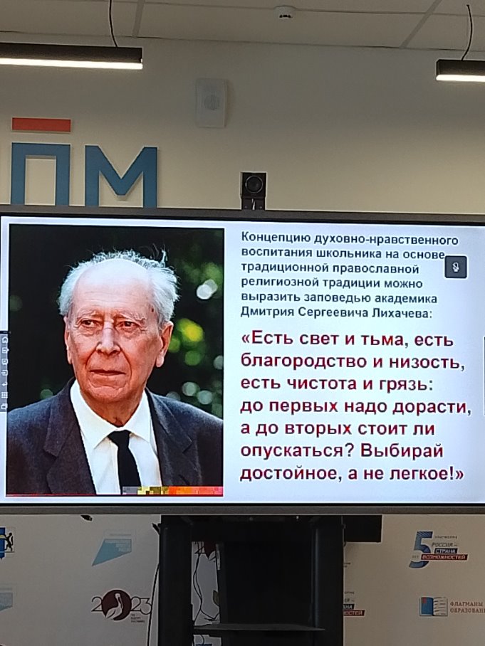Протоиерей Борис, отвечая на вопросы педагогов о том, для чего необходимо изучение основ религиозных культур, среди которых есть и православная культура, сказал: «Для того чтобы ввести воспитанников школы в мир духовно-нравственных ценностей».