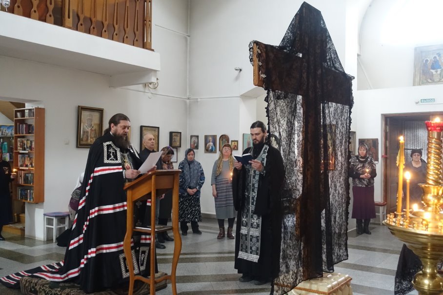Его Преосвященство епископ Филипп возглавил чин Пассии с чтением акафиста Страстям Христовым, ему сослужили секретарь Карасукской епархии иерей Антоний Баранов и иерей Антоний Нечепоренко.