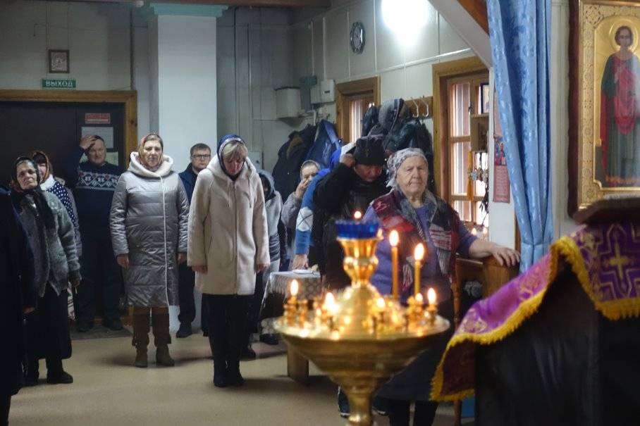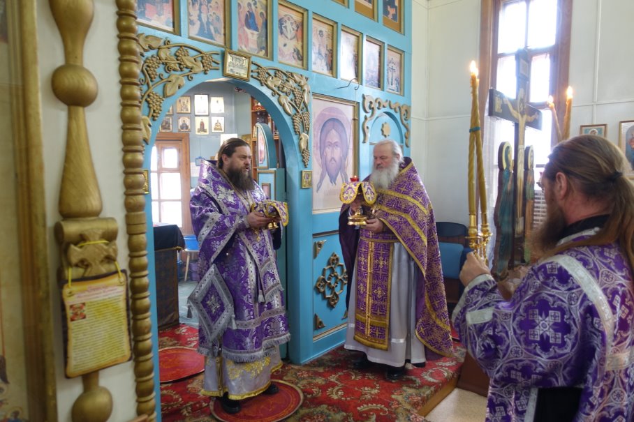 По заамвонной молитве Владыка вместе с иереем Сергием совершил панихиду по всем усопшим православным христианам и поздравил всех с последней родительской субботой Великого поста.