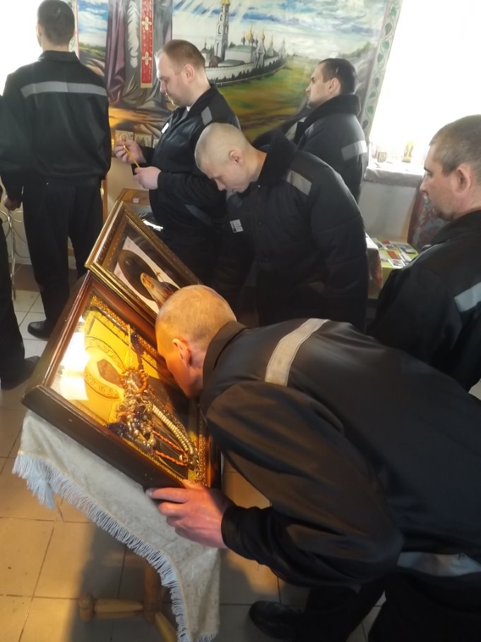 Помолиться и приложиться к иконам с частицами мощей святителя Луки Крымского и Семфиропольского, блаженной старицы Матроны Московской и другим святым пришли осужденные ИК-15.
