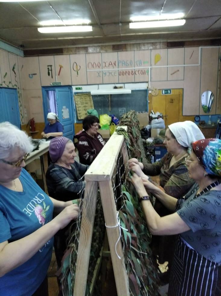 Передали для бойцов изготовленные своими руками маскировочные сети и маскировочные нашлемники.
