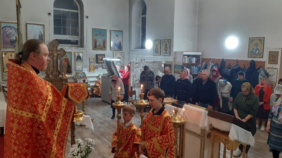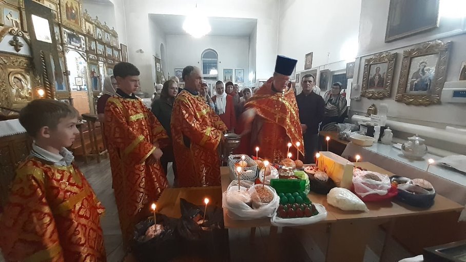 Утром иерей Михаил посетил часовню во имя святого благоверного великого князя Александра Невского с.Цветники и храм Покрова Пресвятой Богородицы с. Верх-Каргата, где были отслужены праздничные пасхальные молебны и освящена пасхальная снедь.