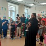По его окончании владыка Филипп поздравил маленьких пациентов и медицинских работников с праздником Светлого Христова Воскресения, рассказал им об этом светозарном празднике и пожелал детям скорейшего выздоровления и всегда помнить о Господе, обращаться к Нему с молитвой и Господь услышит их детские прошения и исполнит их. Дети были очень рады общению с Владыкой и всей толпой сопровождали его по комнатам.