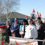 Жители рабочего поселка торжественной колонной прошли по центральной улице от здания районной больницы до монумента Славы с портретами своих прадедов, дедов, отцов и других родственников, тех, кто не вернулся с этой священной для нас войны или не доживших до этих дней. Среди них ветераны армии и флота, партизаны подпольщики, бойцы Сопротивления, труженики тыла, узники концлагерей и блокадники.