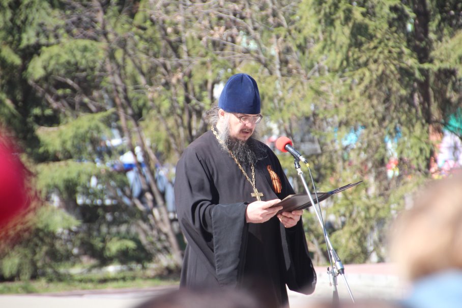Утром в центре села в парке Победы собрались жители и гости с. Довольного. Традиционный митинг, посвященный великому празднику, начался с шествия Бессмертного полка с портретами участников Великой Отечественной войны. В шествии приняли участие и прихожане храма во