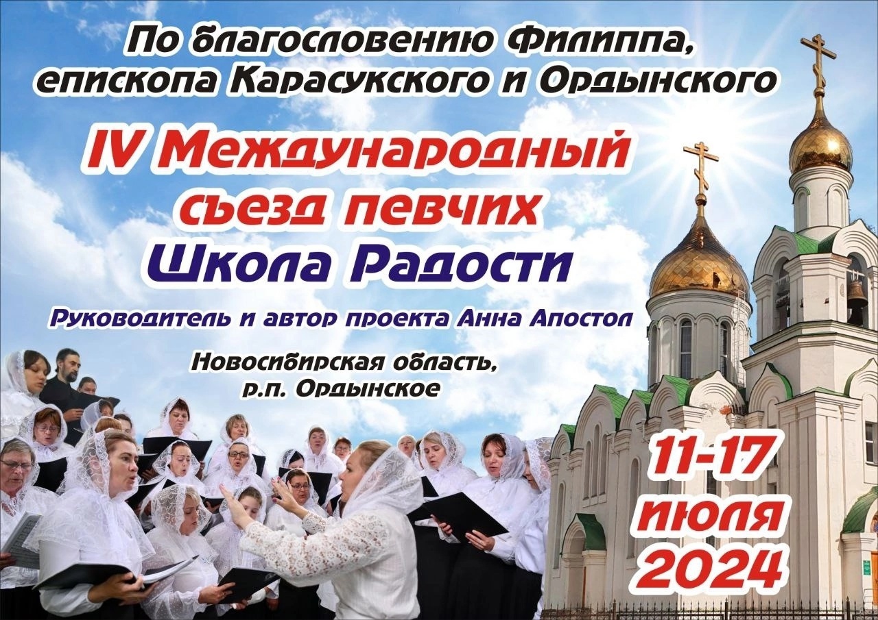 4-й Международный съезд певчих в Карасукской епархии С 13-го по 17-ое июля 2024 года в Карасукской епархии в соборе в честь Живоначальной Троицы р.п. Ордынское состоится 4-й Международный съезд певчих.