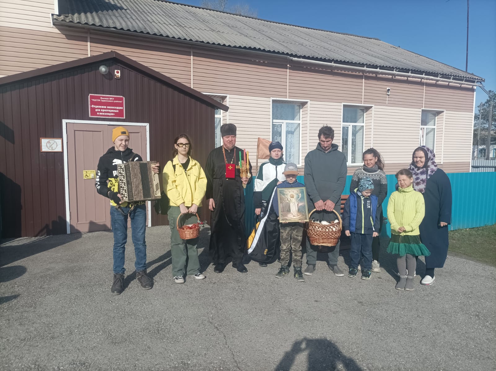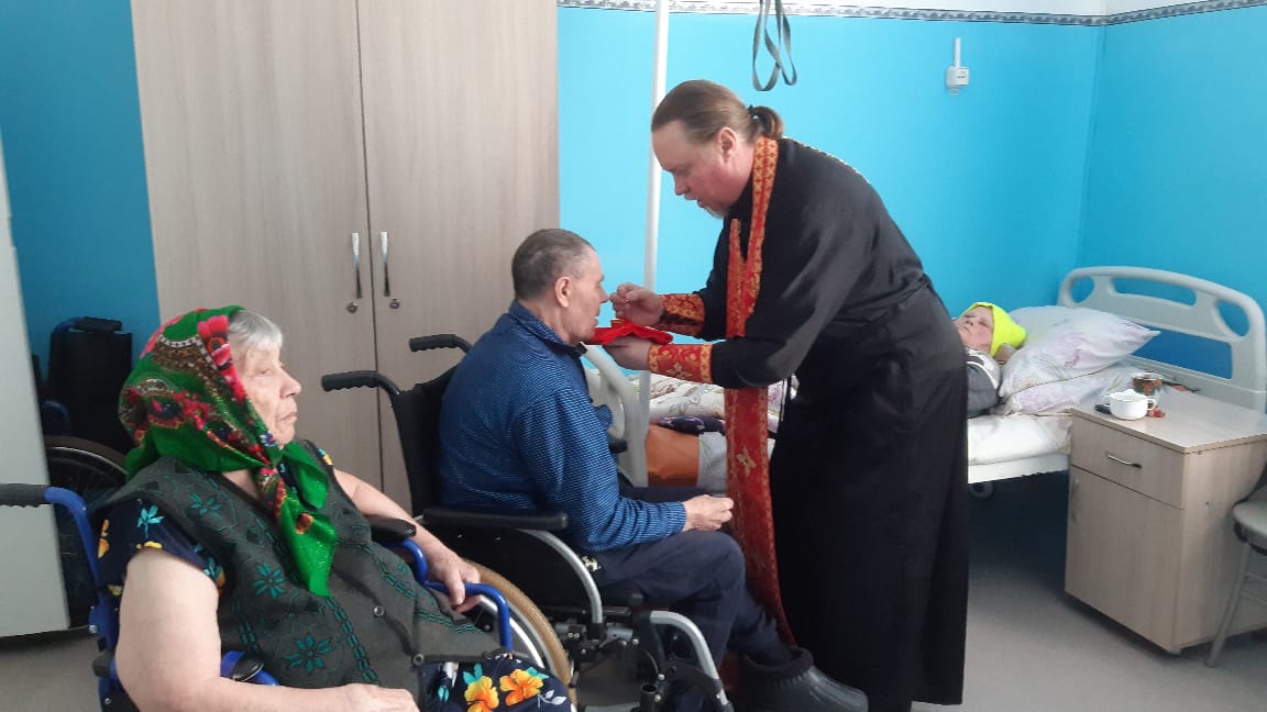 9 Мая, в четверг Светлой седмицы и день Великой Победы в Великой Отечественной войне, иерей Михаил Прут, настоятель храма во имя св. апостола и евангелиста Иоанна Богослова с. Здвинска, и воспитанники воскресной школы под руководством матушки Натальи Прут посетили филиал МКУ “КЦСОН Здвинского района” “Отделение милосердия для престарелых и инвалидов” (ОМ) с. Сарыбалыка Здвинского района, дом ветеранов с. Верх-Каргата, МУНИЦИПАЛЬНОЕ КАЗЕННОЕ УЧРЕЖДЕНИЕ «СОЦИАЛЬНО-РЕАБИЛИТАЦИОННЫЙ ЦЕНТР ДЛЯ НЕСОВЕРШЕННОЛЕТНИХ ЗДВИНСКОГО РАЙОНА» в с. Цветниках.