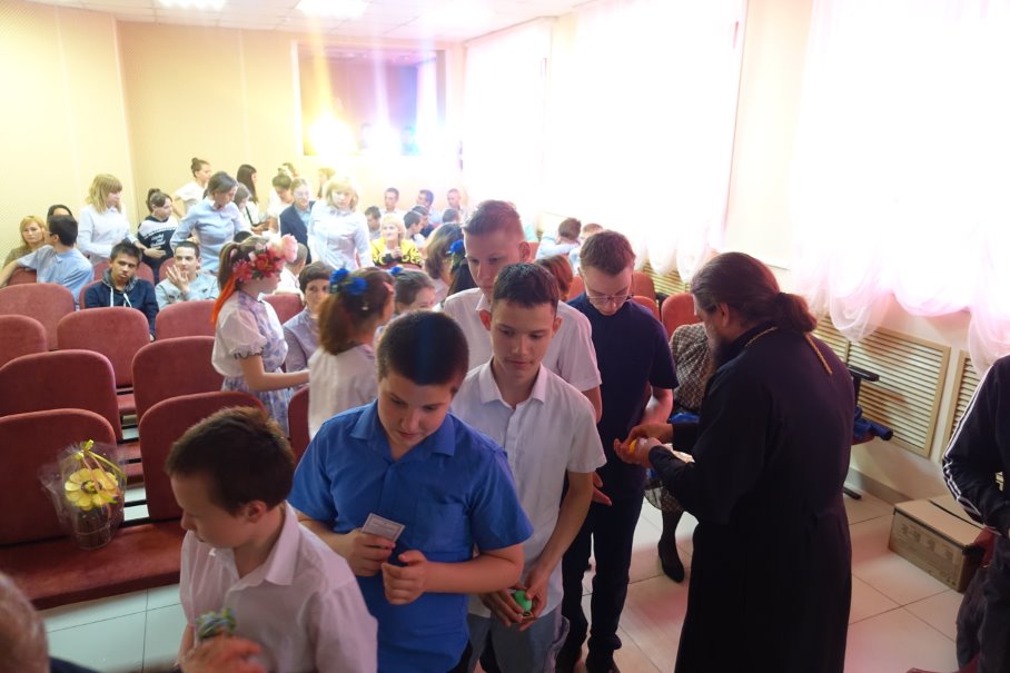 Владыка Филипп говорит, что на все эти встречи с детьми он всегда приезжает со святой водой и что нужно стараться не только вручить детям подарки и крашеные яйца, но нужно обязательно окропить их святой водой, т. к. при окроплении детей святой водой на них сходит Божия благодать.