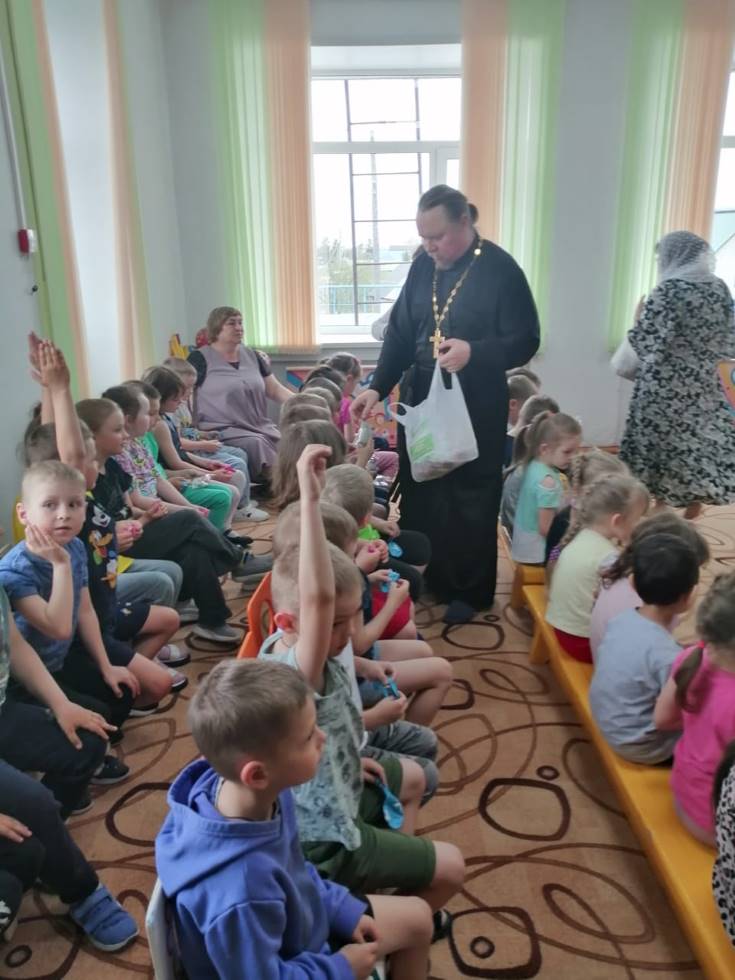 14 мая, в день Радоницы, иерей Михаил Прут, настоятель храма во имя святого апостола Иоанна Богослова с.Здвинска, и учащиеся воскресной школы под руководством Прут Наталии Владимировны посетили МКДОУ Здвинский детский сад «Солнышко» и МКДОУ Здвинский детский сад «Светлячок».