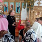 Настоятель храма иерей Михаил Прут познакомил детей с храмом, рассказал о церковных праздниках, научил правильно осенять себя крестным знамением, ставить свечи на подсвечник.