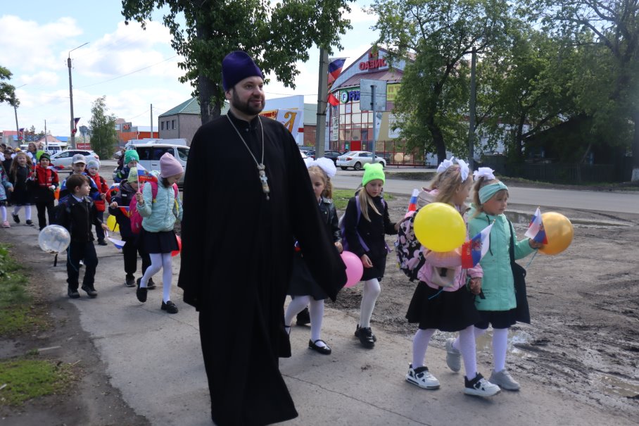 25 мая/суббота. Иеромонах Мелхиседек (Свистелин), благочинный Центрального округа Карасукской епархии, посетил праздник “Последнего звонка” в школе № 148 города Купино. Батюшка обратился с напутственным словом к выпускникам школы и благословил их на успешную сдачу экзаменов.