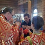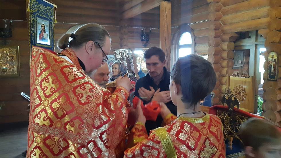 Настоятель храма иерей Михаил Прут поздравил прихожан с Пасхой Христовой и рассказал о мученическом подвиге патриарха Ермогена. Причастились Святых Христовых Таин 16 человек.