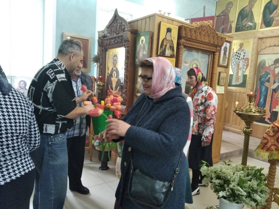 Мужчины подарили всем прихожанкам, даже самым маленьким, цветы.
