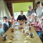 В эти жаркие летние дни по окончании беседы иеромонах Мефодий окроплял детей святой водой и каждый мог также попить святой воды и взять ее домой.