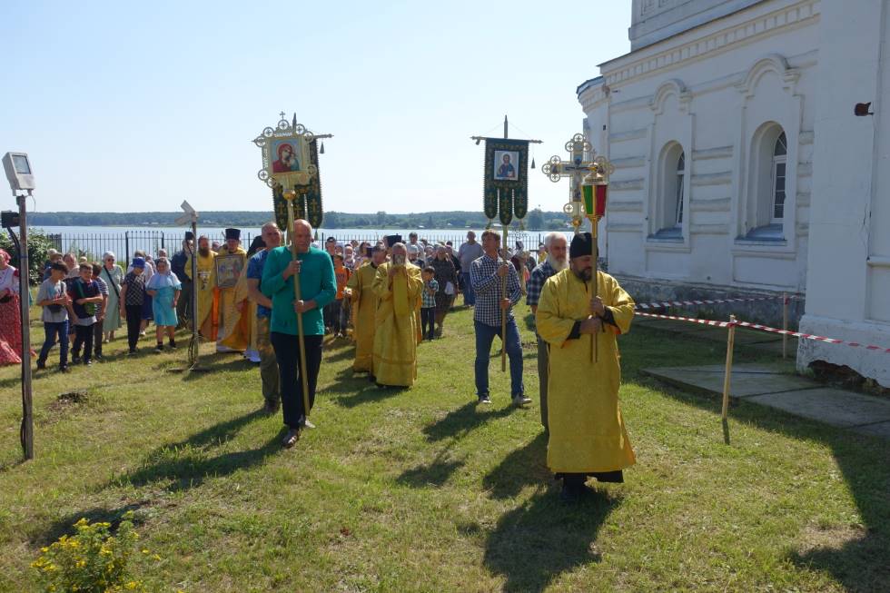 В храме в этот день отмечали престольный праздник. По окончании Литургии состоялся традиционный крестный ход вокруг храма, который прошел по мягкой скошенной траве буквально по берегу Обского водохранилища: так близко расположено оно от здания храма.