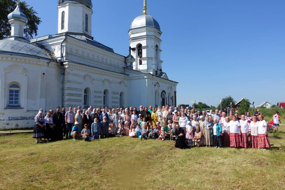 И всех любезно пригласили на совместную трапезу на свежем воздухе, которая по традиции стала прекрасным продолжением престольного торжества! По ее окончании в память об этом замечательном празднике была сделана общая фотография.