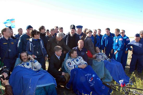 Спускаемый аппарат космического корабля «Союз ТМА-07М» с тремя членами экипажа МКС-35 россиянином Романом Романенко, американцем Томасом Машберном и канадцем Крисом Хэдфилдом во вторник, 14 мая, в 06.30 по московскому времени благополучно совершил посадку в запланированном районе Казахстана, примерно в 146 километрах юго-восточнее г. Жезказган.