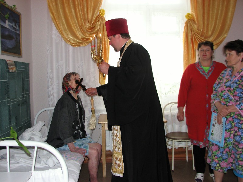 19 мая 2013 г., в неделю 3-ю по Пасхе, святых жён-мироносиц, при поддержке Татьяны Анатольевны Найденовой, председателя местного общества инвалидов, священник Роман Венцак в очередной раз посетил Дом Милосердия в селе Сарыбалык Здвинского района.