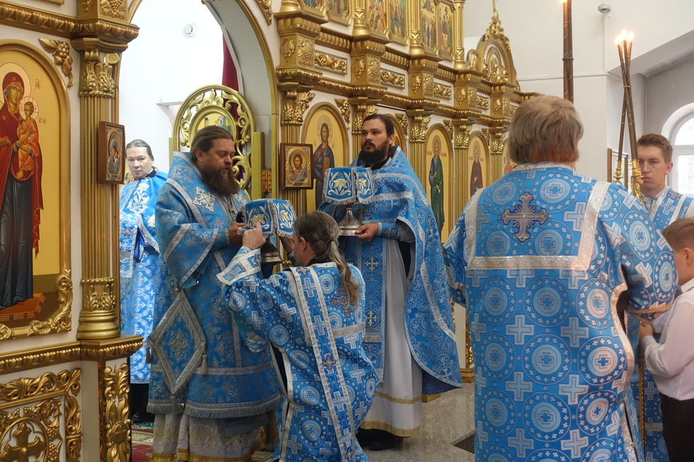 28 августа/среда. В день празднования Успения Пресвятой Богородицы Его Преосвященство епископ Филипп возглавил Божественную литургию а кафедральном соборе св. Андрея Первозванного г. Карасука. Ему сослужили секретарь Карасукской епархии иерей Антоний Баранов и иерей Антоний Нечепоренко.