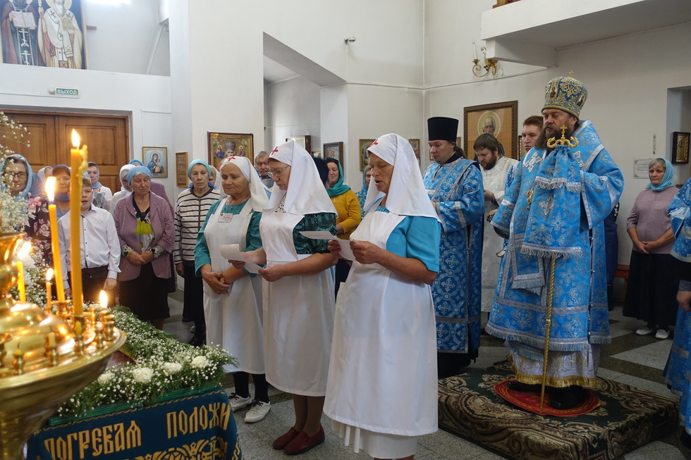 Владыка напомнил слова свт. Луки (Войно-Ясенецкого), сказанные им в день Успения Божией Матери о том, что ни один из земнородных не умирал так как умерла Пресвятая Богородица, смертное ложе которой окружали лики апостолов, в возглавии ее смертного одра сияла небесным светом райская ветвь, принесенная Ей за 3 дня до Ее блаженной кончины Архангелом Гавриилом и чью душу принял Сам Господь Иисус Христос, Который вознес Ее вместе с Ее пречистым телом на небо. Так почила Божия Матерь, таким недостижимо высоким является для нас Ее образ! И после слов Иисуса Христа на Кресте, обращенных к апостолу Иоанну: «Се Мати твоя» (Ин. 19, 27), Она стала Матерью всего человечества и неустанно молится «за всех нас грешных, благосклонно внимая нашим молитвам».