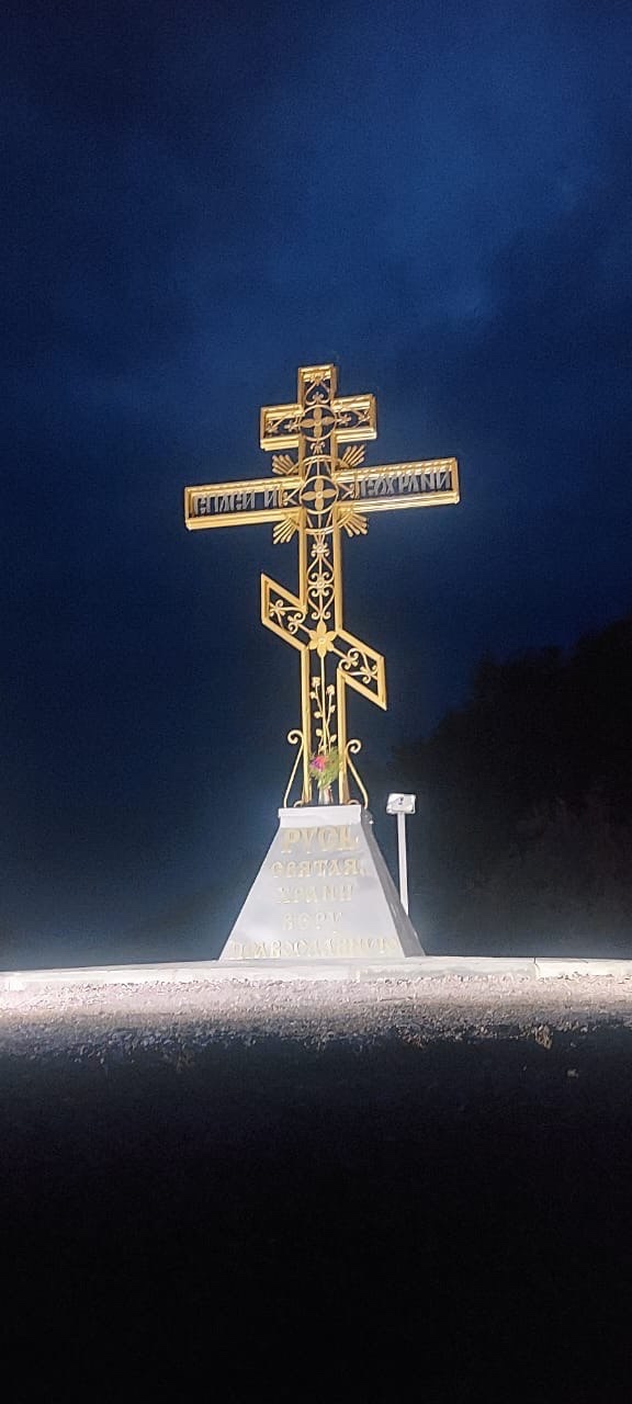 Крест установлен в память отцов-основателей к 200-летнему юбилею села. Крест спасения, на котором Христос обнимает весь мир, — ориентир духовный — светится и в ночное время. «Свет Христов просвещает всех».