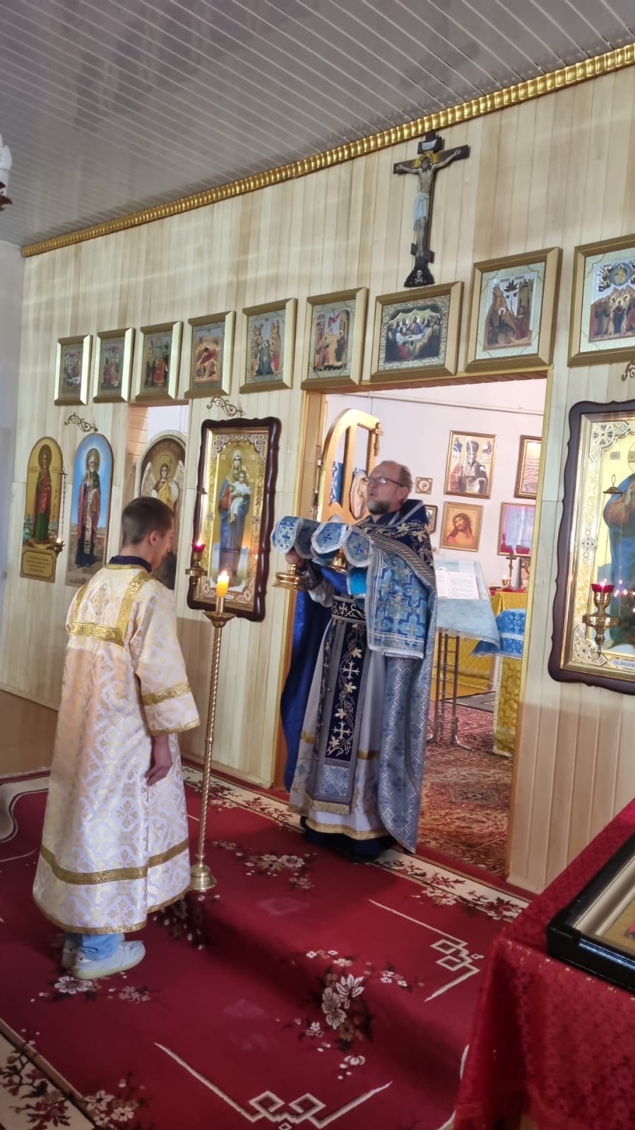 27 августа в храме в честь Успения Пресвятой Богородицы села Половинного была отслужено всенощное бдение с литией и 28 августа совершена Божественная литургия, за которой молились люди из разных сел Краснозерского района.