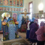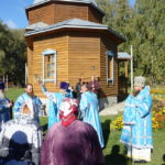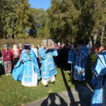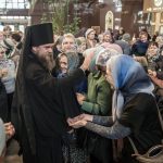 По окончании Литургии Владыка с клиром и паствой совершил крестный ход вокруг храма. У каждой из 4-х его сторон священнослужители окропляли молящихся святой водой, а у алтаря архипастырь зачитал Евангельское начало.