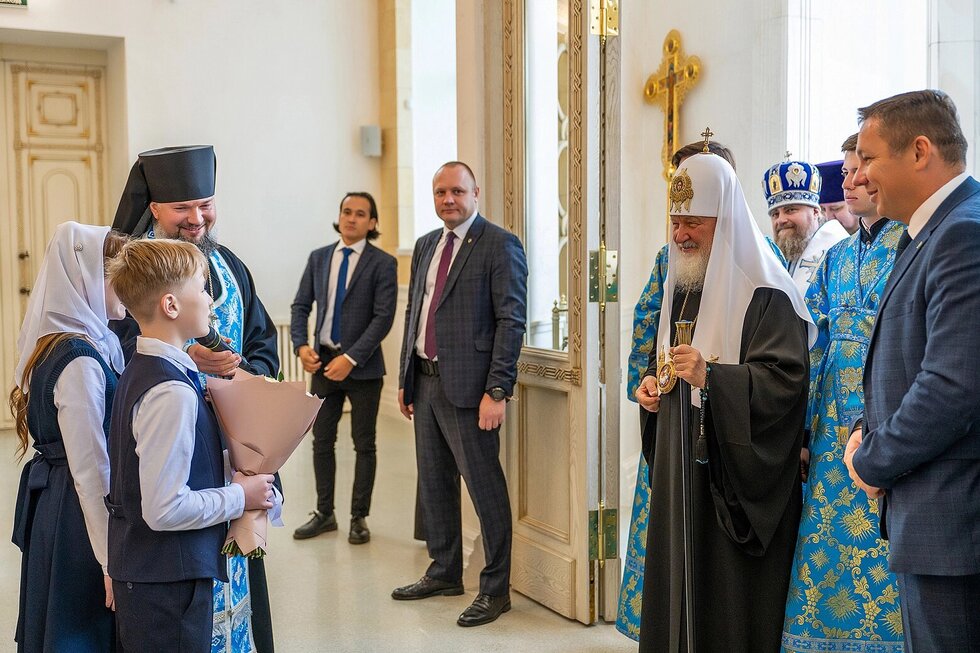 После чина освящения Патриарх осмотрит храмовый комплекс. В архитектурный ансамбль кроме Кафедрального собора входят площадь для проведения крестных ходов с 23-метровой скульптурой Архангела Михаила, здания подворья и православной гимназии. В двухэтажном здании храмового подворья размещена трапезная, швейная мастерская, оборудованы гостиничные номера для приезжих педагогов гимназии и гостей.