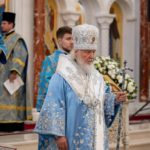 Святейший Патриарх Московский и всея Руси Кирилл прибыл в окружную столицу накануне. Сегодня, 21 сентября, он совершил великое освящение верхнего храма самого большого храмового комплекса в Российской Арктике и Божественную литургию в новоосвященном храме.