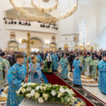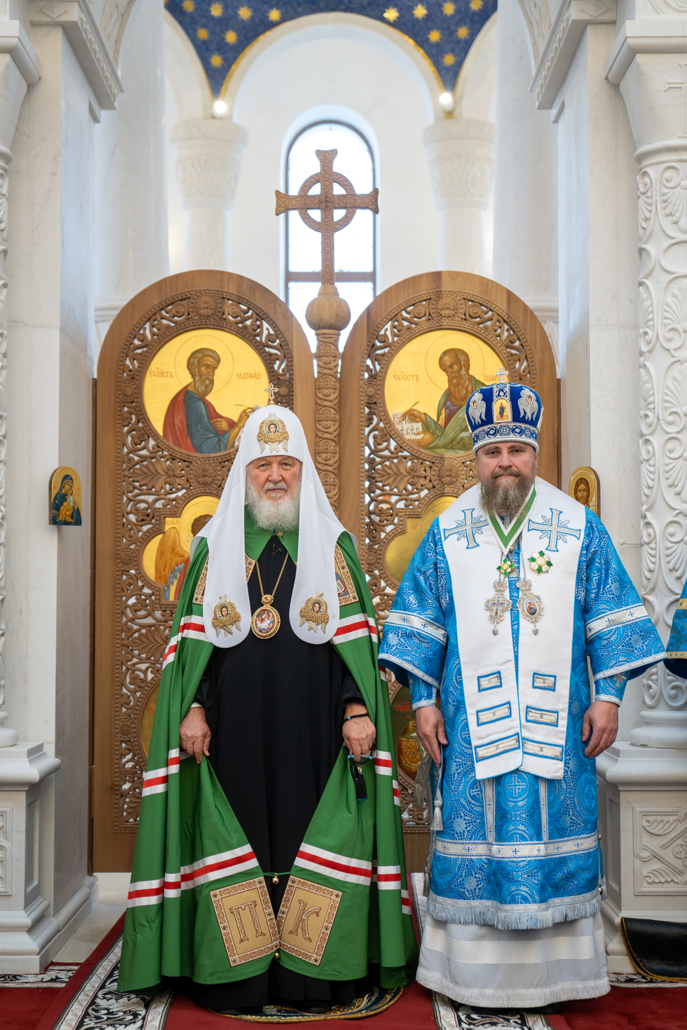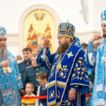 За Божественной литургией Его Святейшеству сослужили: митрополит Наро-Фоминский Никандр, председатель Финансово-хозяйственного управления Московского Патриархата; митрополит Тобольский и Тюменский Димитрий; митрополит Ханты-Мансийский и Сургутский Павел; митрополит Екатеринбургский и Верхотурский Евгений, председатель Синодального отдела религиозного образования и катехизации; архиепископ Салехардский и Ново-Уренгойский Николай; епископ Карасукский и Ордынский Филипп; епископ Ноябрьский Феодосий, викарий Салехардской епархии; епископ Раменский Алексий, личный секретарь Святейшего Патриарха Кирилла.
