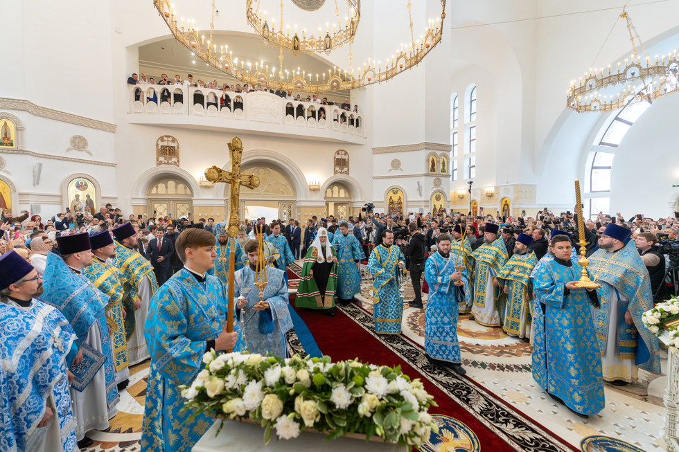 «Поздравляю вас с историческим событием, освящением храма в этом месте. Конечно, сам факт строительства такого грандиозного храма тут уже свидетельствует о том, какой путь прошла вся наша страна. Это стало возможным благодаря и технологическим, и научным достижениям. Но ни наука, ни техника не помогла бы, если бы не было самого главного – нужных людей. Человек опирается на свои силы, на науку, знания, технологии. Но никакое материальное благополучие не может обеспечить того, что мы называем полнотой жизни, когда сочетаются и духовные, и материальные ценности», – сказал Святейший Патриарх Московский и всея Руси Кирилл.
