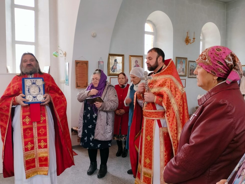 В завершении Литургии состоялось поклонение Честному Кресту Господню. Иеромонах Мелхиседек передал поздравление с престольным праздником Управляющего Карасукской епархией, Преосвященнейшего епископа Филиппа, настоятелю и прихожанам храма и провозгласил «Многая и благая лета» Святейшему Патриарху Московскому и всея Руси Кириллу, митрополиту Никодиму и епископу Филиппу.