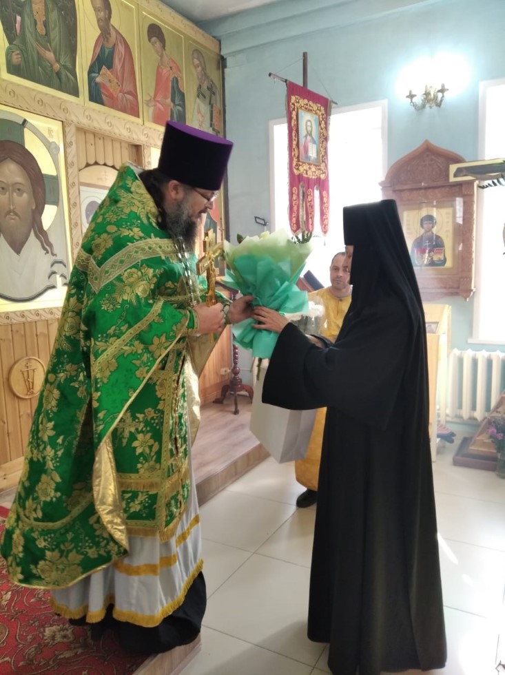 За богослужением вместе с прихожанами доволенского храма молились и гости – монашествующие из монашеской общины храма в честь Покрова Пресвятой Богородицы с. Верх-Каргата Здвинского района. Праздник традиционно продолжился за общей трапезой, с любовью приготовленной прихожанами.