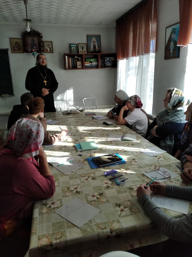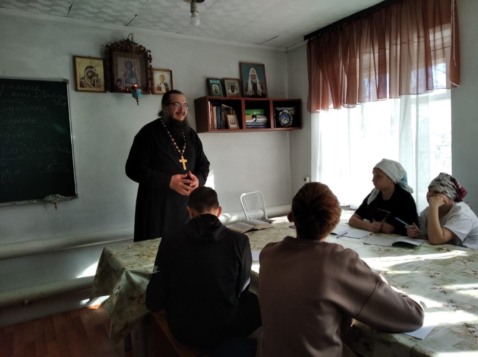 Настоятель прихода протоиерей Андрей Гусев обучает Закону Божиему, рассказывает как следует читать и понимать Библию, разъясняет ее содержание. Кроме того, проводятся еще уроки по Ветхому Завету, по церковно-славянскому языку.
