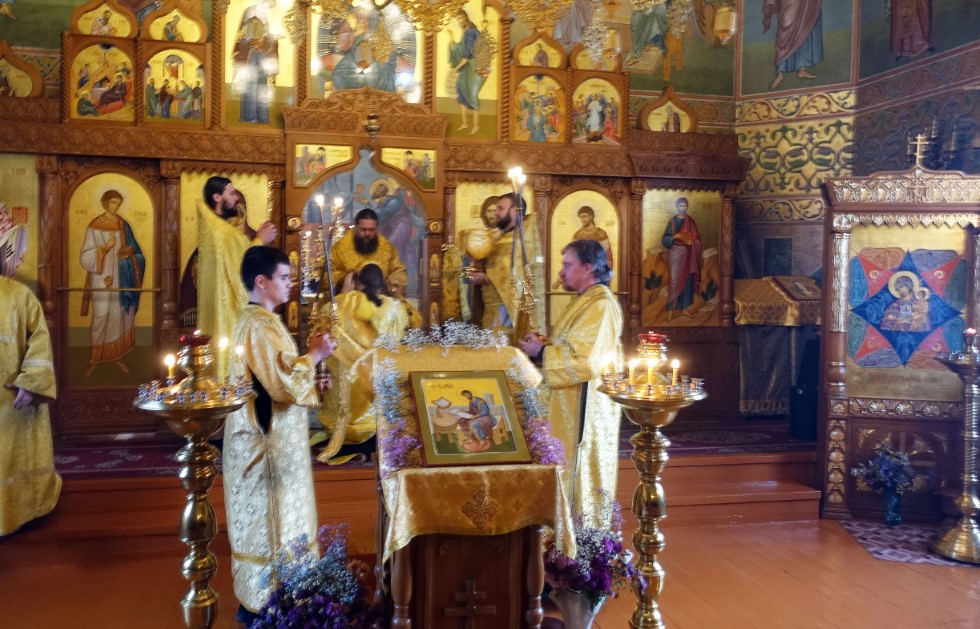 По окончании Литургии состоялись праздничный молебен и крестный ход вокруг храма.
