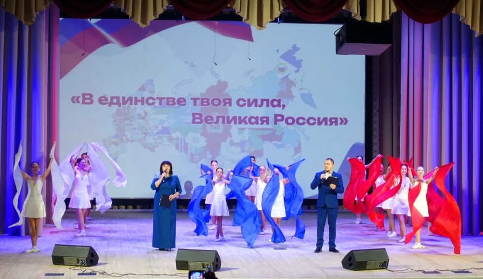 По завершении официальной части на сцене Дворца Культуры начался праздничный концерт, посвященный Дню народного единства, в котором приняли участие творческие коллективы города.