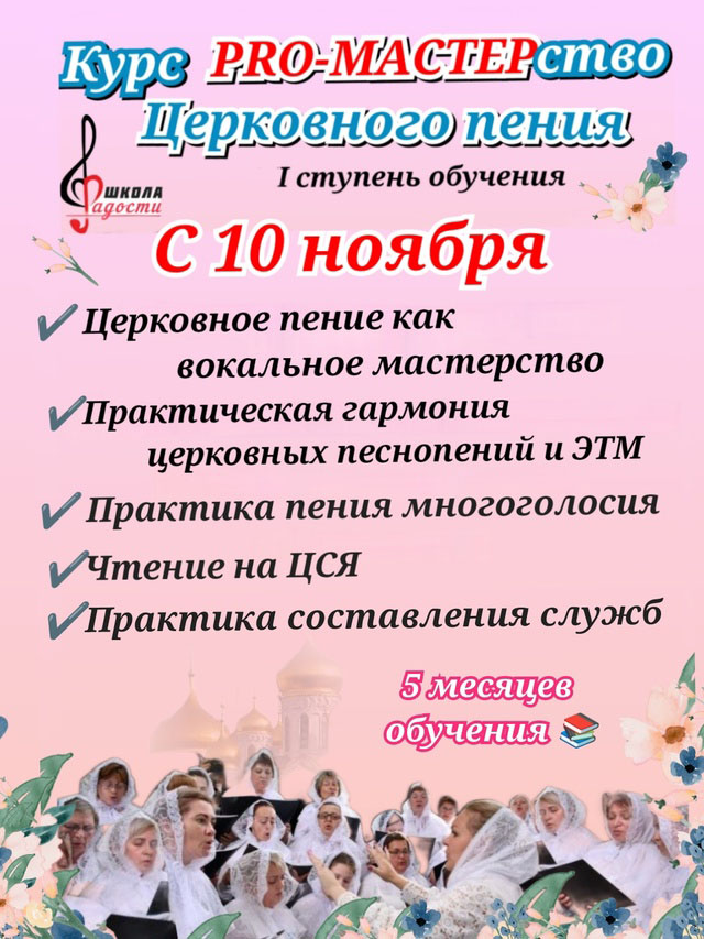 10 ноября 2024 года начинается новый курс «Церковного пения»! Все впереди: знания, открытия, свершения! Мы приложим все усилия , чтобы каждый получил свой результат!