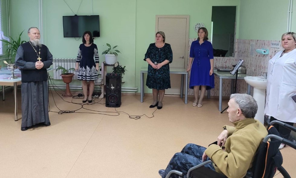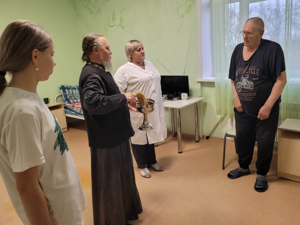 Совместно с директором дома-интерната Емелюшиной Г.А., библиотекарем Водинской сельской библиотеки Бухмиллер С.Н. и несколькими учащимися иерей Мефодий заходил в каждую комнату, окроплял всех пожилых людей святой водой. В этот день любезно согласилась принять участие в благотворительной акции «Единство в милосердии» и вокальная группа девушек из соседнего села – из Вознесенского сельского Дома культуры. Ими были исполнены душевные песни о России, о селе и этим была создана теплая атмосфера праздника.