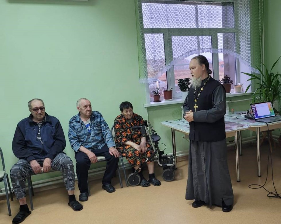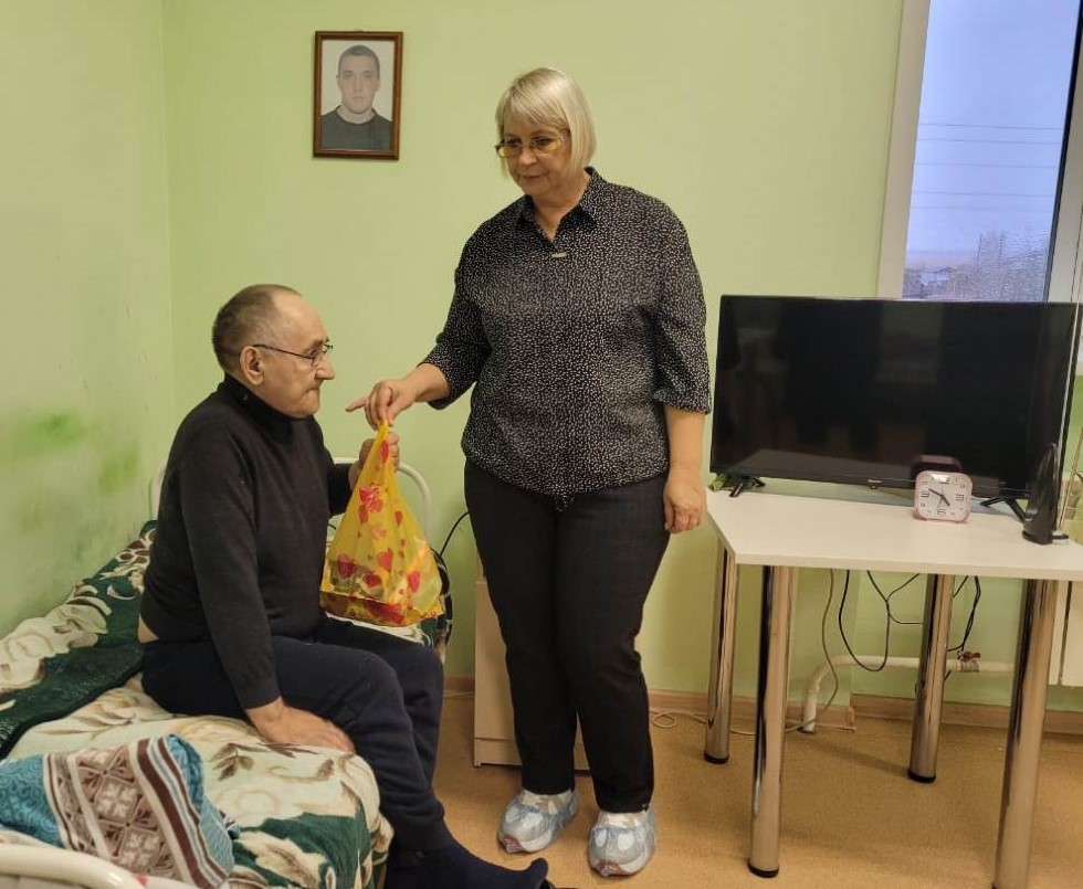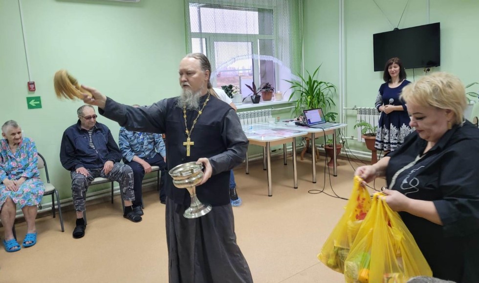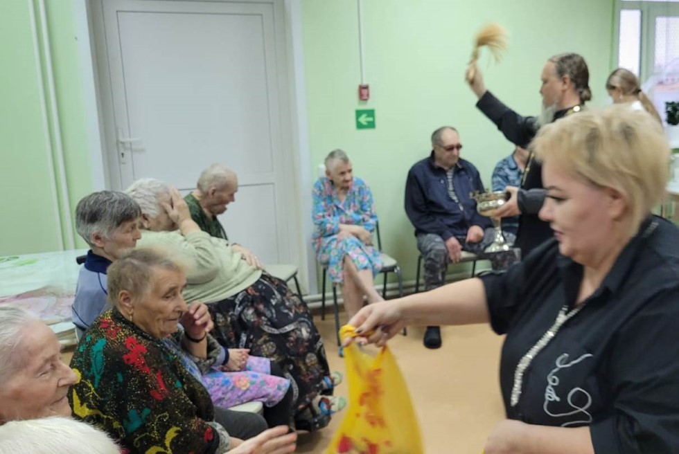 В «Доме-интернате (пансионате) общего типа для граждан пожилого возраста и инвалидов» сейчас проживает 27 одиноких людей. Прихожане Баганского прихода, учителя Водинской основной школы, частные предприниматели подготовили и сформировали подарки для этих 27 пожилых людей: пакеты со сладостями и фруктами. Священнослужитель благословил всех пожилых женщин и мужчин Казанской иконой Пресвятой Богородицы, рассказал о помощи Богородицы в тяжелые для Росси времена.