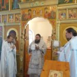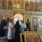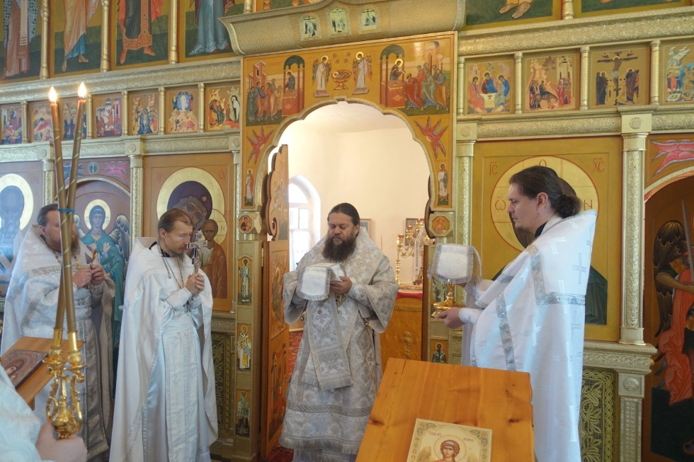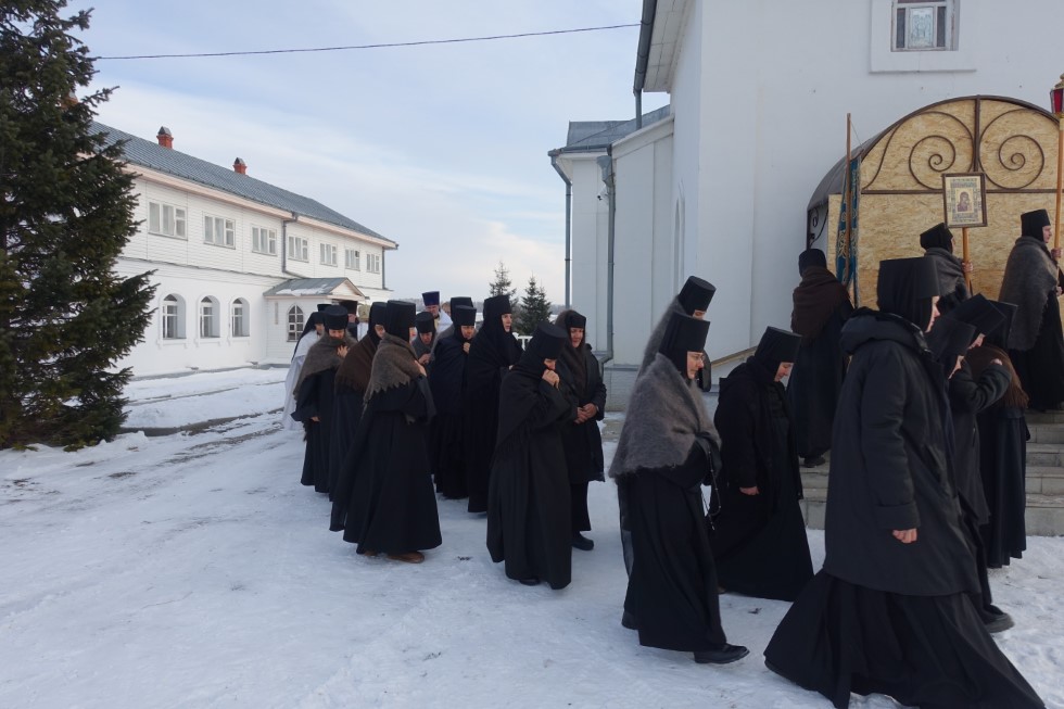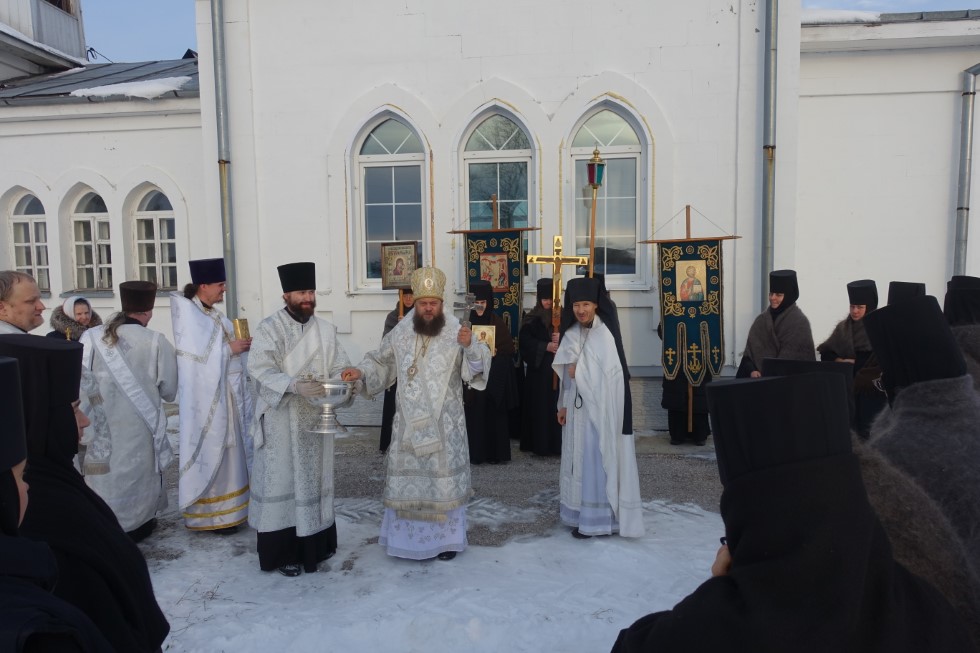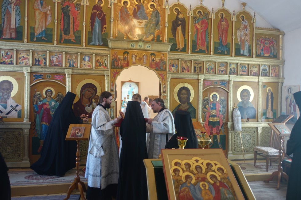 За Литургией молились игумения Мария (Серопян), настоятельница монастыря, и сестры святой обители. По сугубой ектении епископ Филипп вознес молитву о Святой Руси. После отпуста Литургии Владыка возглавил крестный ход вокруг храма.