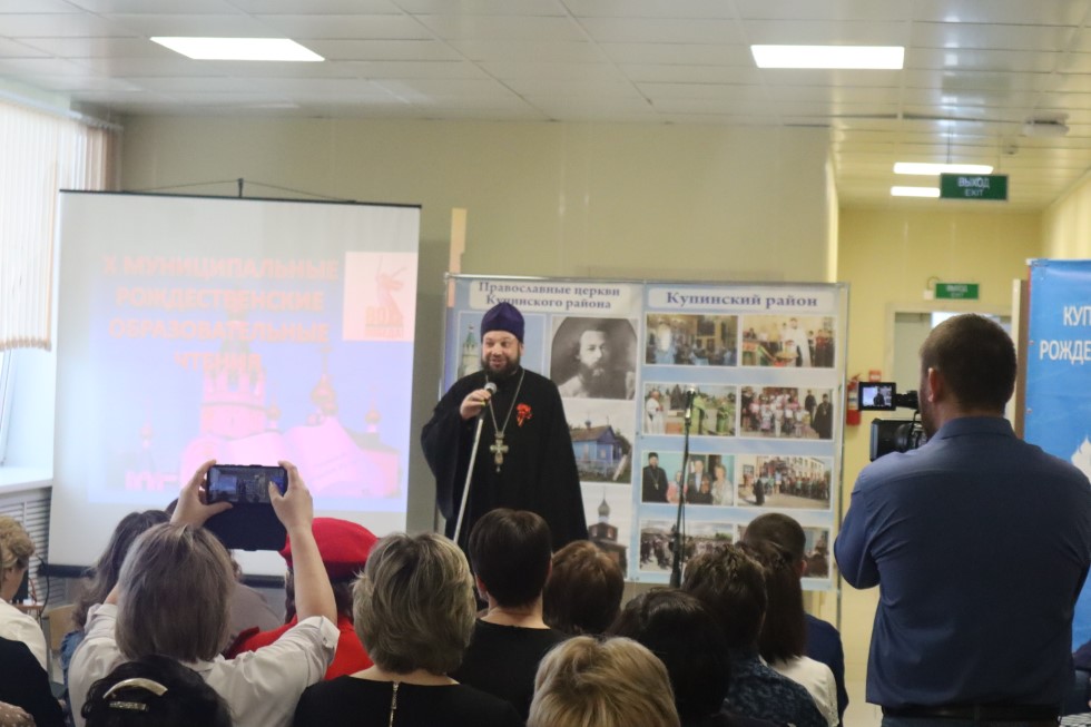 В 11.00 началось торжественное открытия заседания X Купинских Рождественских образовательных чтений. С приветственным словом к участникам Чтений обратилась Владимир Николаевич Шубников, глава Купинского района; Ирина Владимировна Гейнрих, директор Управления образования Купинского района; Наталья Сергеевна Купина, директор МБОУ Камышинской СОШ Купинского района.