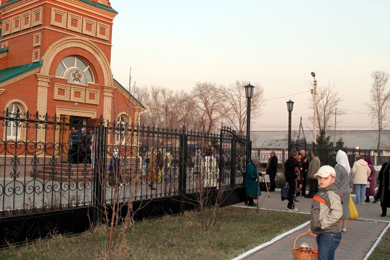 Несколько сотен карасучан посетили кафедральный собор Андрея Первозванного в Великую Субботу, 14 апреля 2012 г. По традиции освящение яиц, куличей и пасок происходило накануне Пасхальной Литургии. Перед освящением, несколько слов прихожанам сказал Иерей Роман Венцак, секретарь Карасукской епархии.