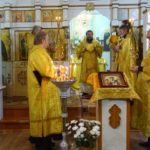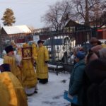 По окончании Литургии под праздничный звон колоколов с хоругвиями и чтением Евангелия состоялся крестный ход вокруг храма.