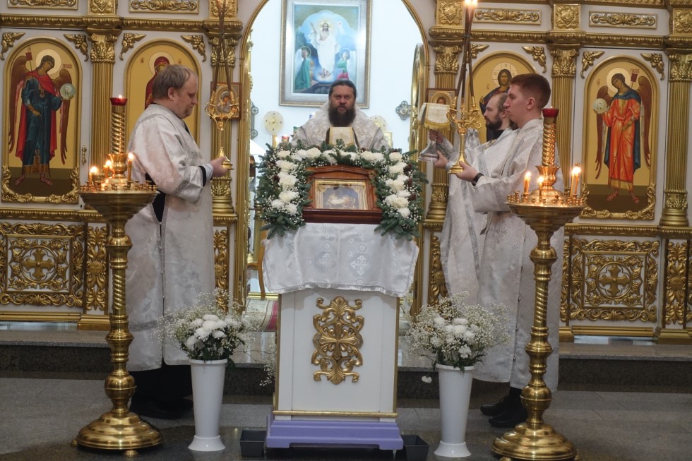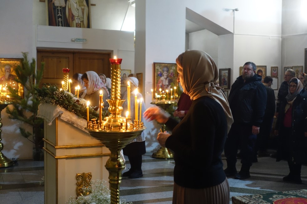 С великого повечерия и утрени началось Рождественское богослужение и завершилось праздничной Божественной литургией, по сугубой ектении которой епископ Филипп вознес молитву о российском воинстве и о мире, по запричастном стихе — огласил верующим Рождественское послание Святейшего Патриарха Московского и всея Руси Кирилла.