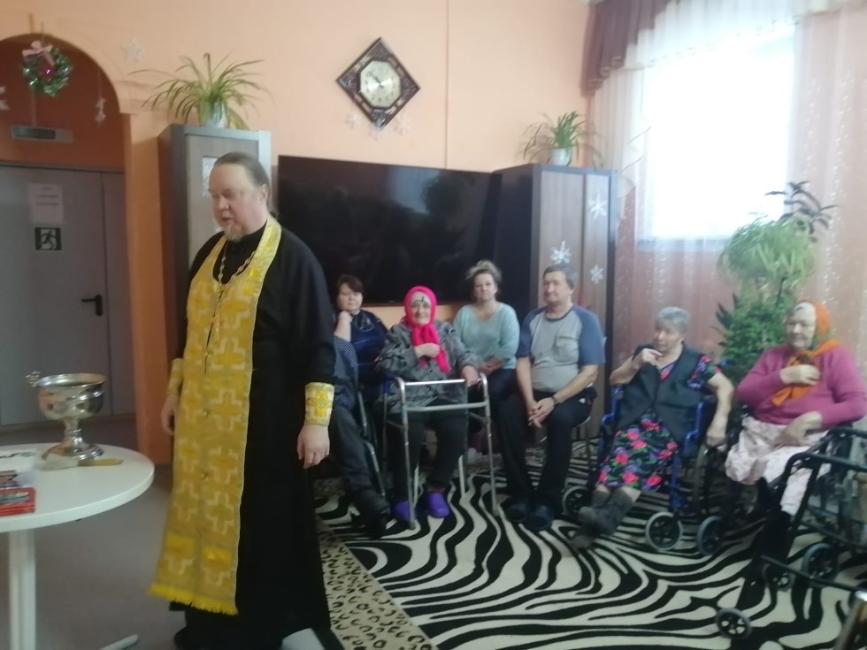 Иерей Михаил совершил молебен и поздравил постояльцев учреждения с Рождеством Христовым. Всем были розданы сладкие подарки.